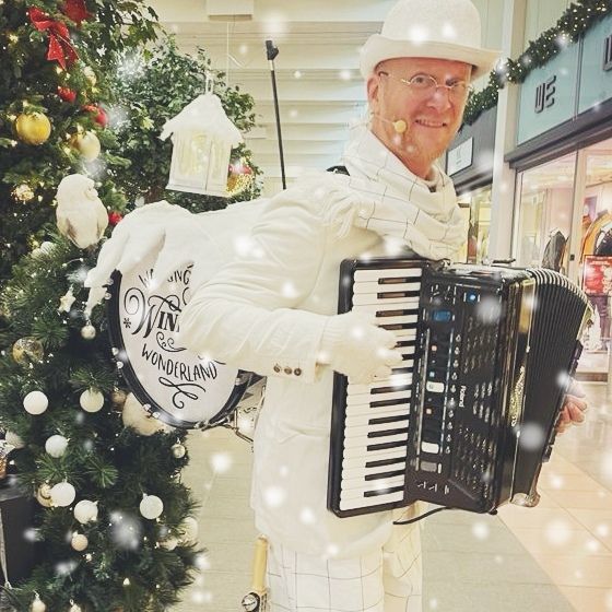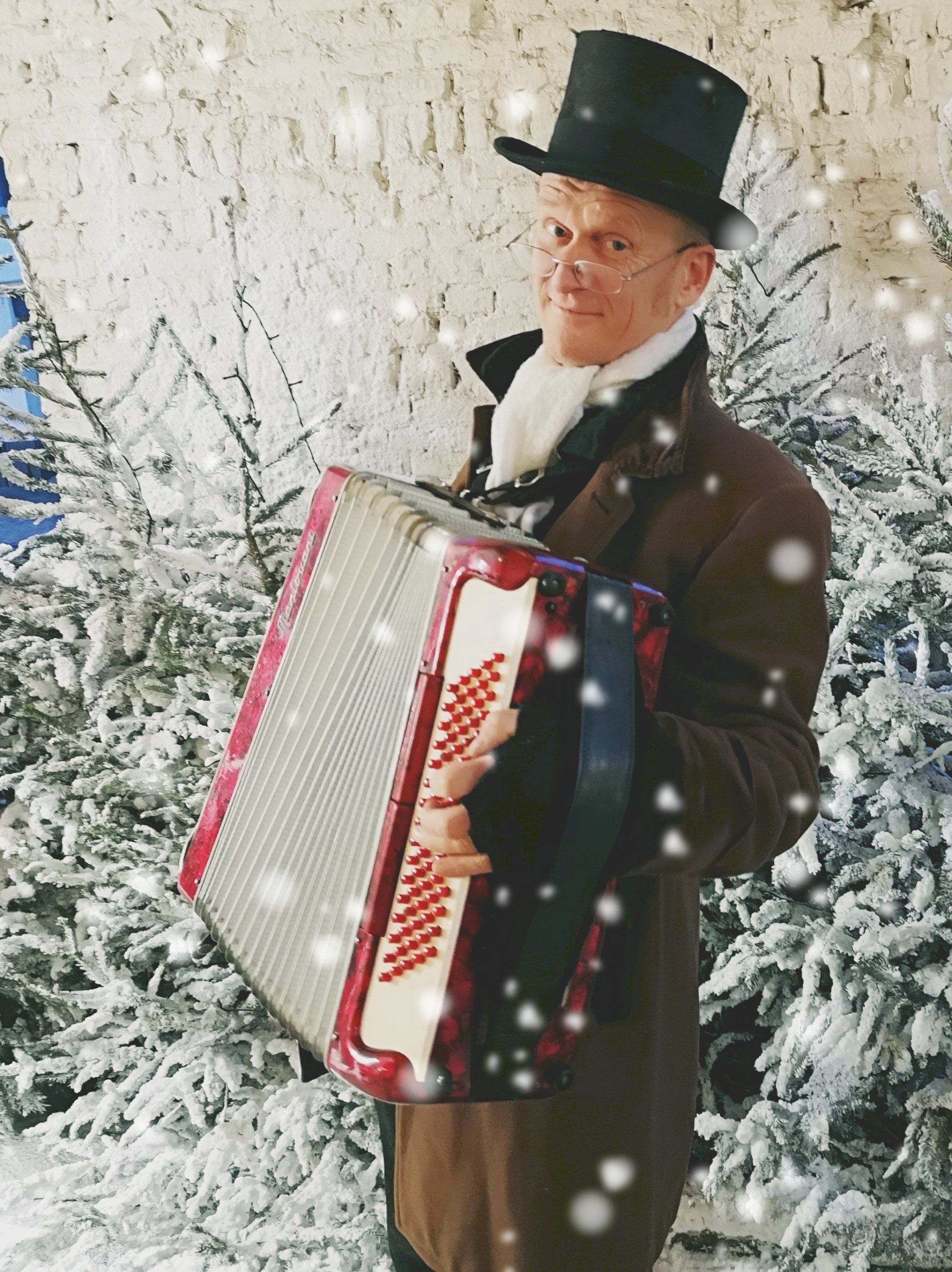 THE SINGING SANTA CLAUS plays the accordion and sings all those well-known Christmas songs. How fun is that?!