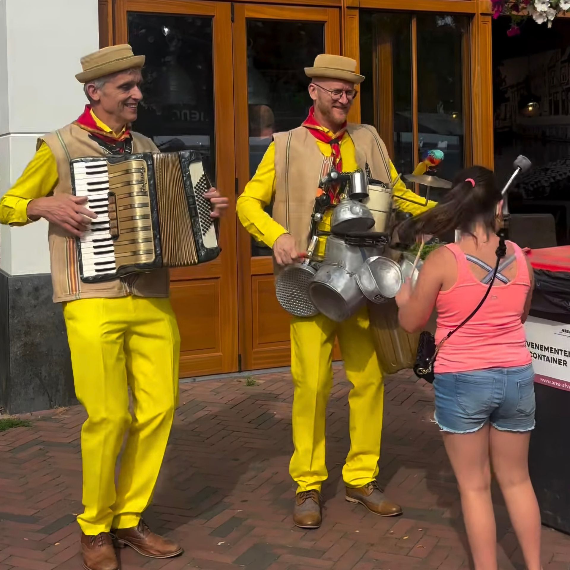 Het Tabasco Pretorkest maakt aanstekelijke vrolijke muziek in een unieke mobiele bezetting. Een accordeonist en een percussionist op potten&pannen (!). Zoiets heb je echt nog nooit gezien of gehoord! Swingende latin, dansbare ska, pittige polka's en vrolijke walsjes. Je zelf ook meespelen en ontdekken hoe leuk het is om zelf muziek te maken. Dus omhoog met die handjes en schudden met die heupen. Attentie attentie, hier komt Tabasco Pretorkest!
